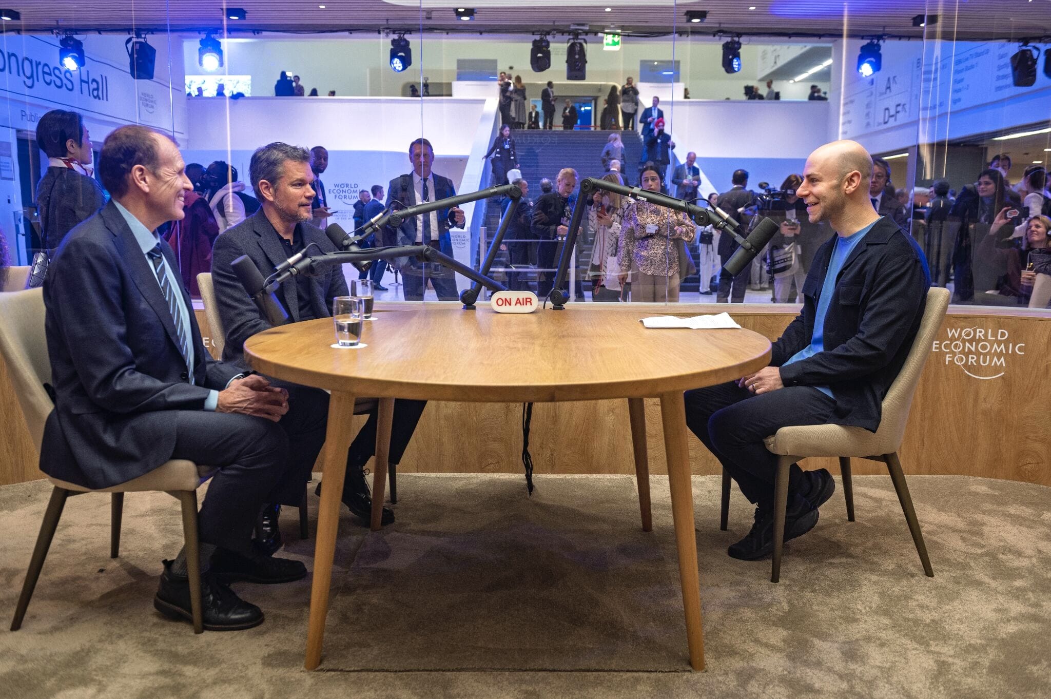 To the World Economic Forum in Davos, where this fancy studio was part of the event. From the outside, a big screen telling people what was being recorded. The studio was used by everyone from The Rest is Politics to Scott Galloway, David Beckham, Matt Damon, and British Chancellor of the Exchequer, Rachel Reeves.