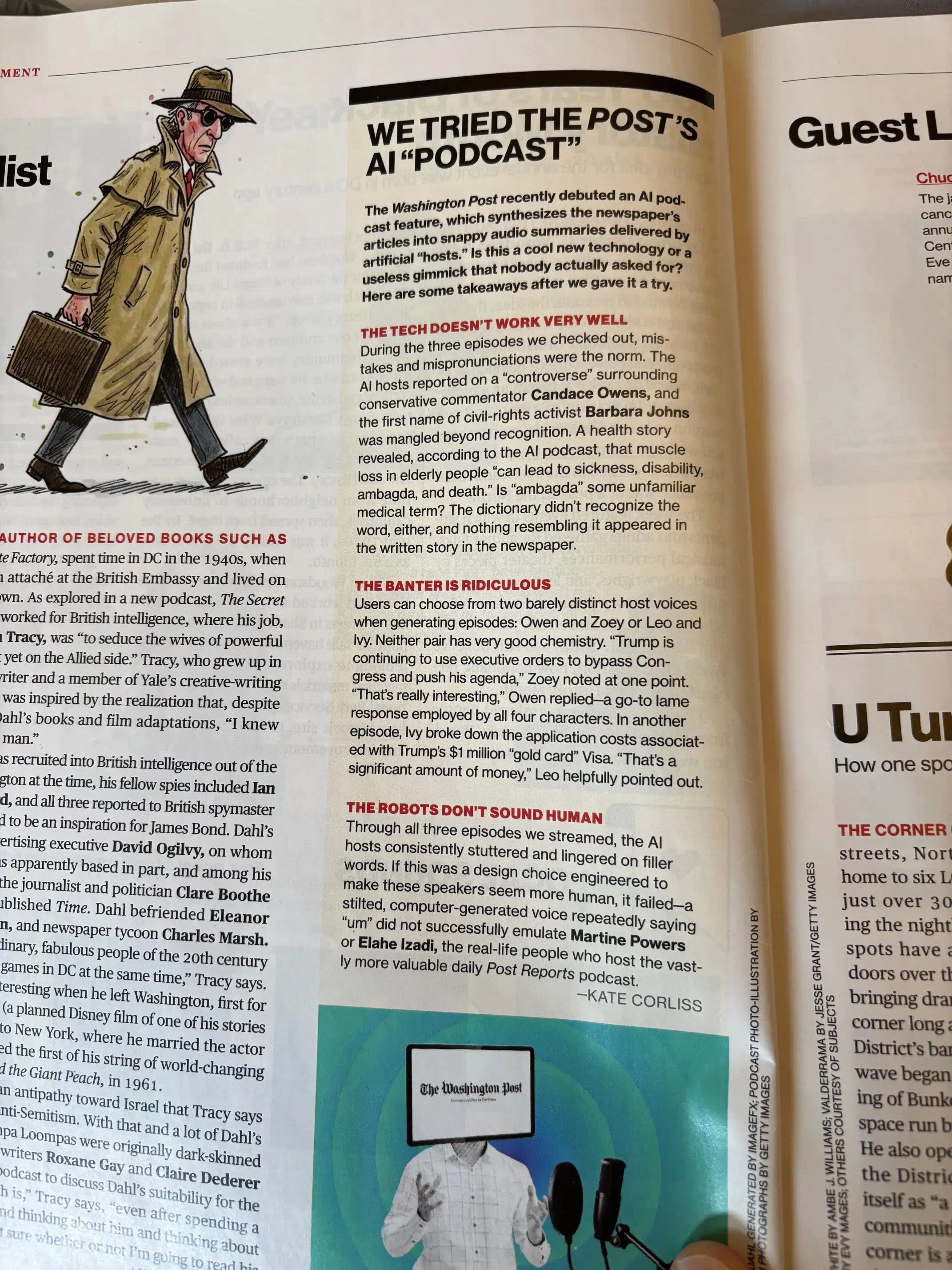 In an article that we can’t find online, The Washingtonian Magazine tried the Washington Post’s AI “podcast”, and calls it “ridiculous”, “stilted” and where “mistakes and mispronounciations were the norm”.